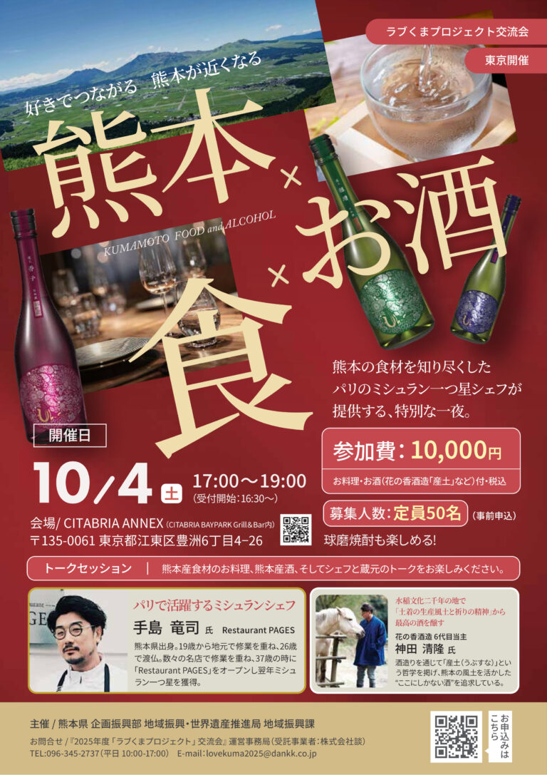 今回はディープな熊本を感じていただける交流会(トークイベント)と現地体験会を、それぞれテーマを変えて開催予定です。